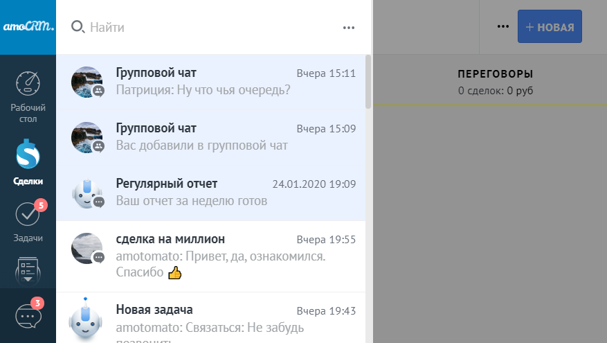 * Если вам написали в чат amoCRM, включая групповые и личные чаты.